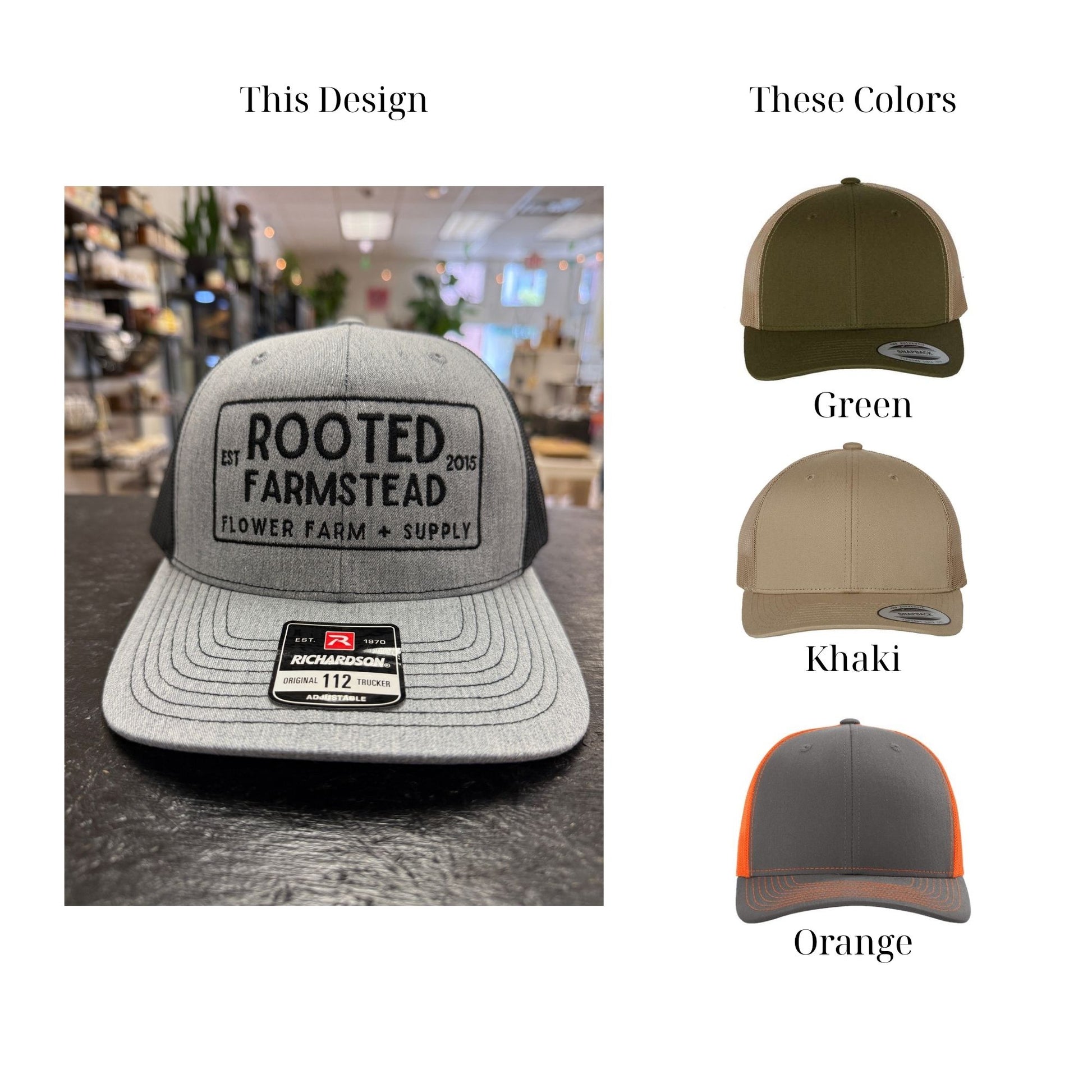Rooted Supply Hats - Trucker style hats. Embroidered. One size. Adjustable snapback.